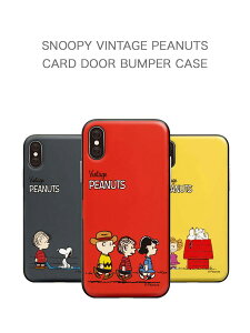 Snoopy Vintage Card Door Bumper Case スヌーピー ピーナッツ ビンテージ レッド イエロー ピンク ブルー ライトピンク グレー ユニーク カード 収納 スタンド バンパー 鏡 海外 輸入 正規品 韓国 ファッション デザイン スマートフォンケース スマホケース スマホカバー